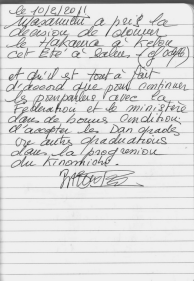 Des écrits confirment les décisions du Maître et prouvent sa volonté d’appliquer les grades Dan pour le Kinomichi. (Cf. Pièces annexes 2 et 3)