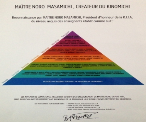 Cette même année, Masamichi Noro entérine officiellement une pyramide en sept groupes, établissant une hiérarchie claire des niveaux techniques et des compétences desinstructeurs nommés par ses soins. (cf. Pièces annexes 4 et 5)