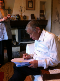 Ces documents sont signés le 29 septembre 2012 au domicile du Maître en présence de : (par ordre alphabétique) Jean-Pierre Cortier, Claire Darjo, Lucien Forni, Odyle Noro-Tavel, Hubert Thomas. (Cf. Photographies jointes)